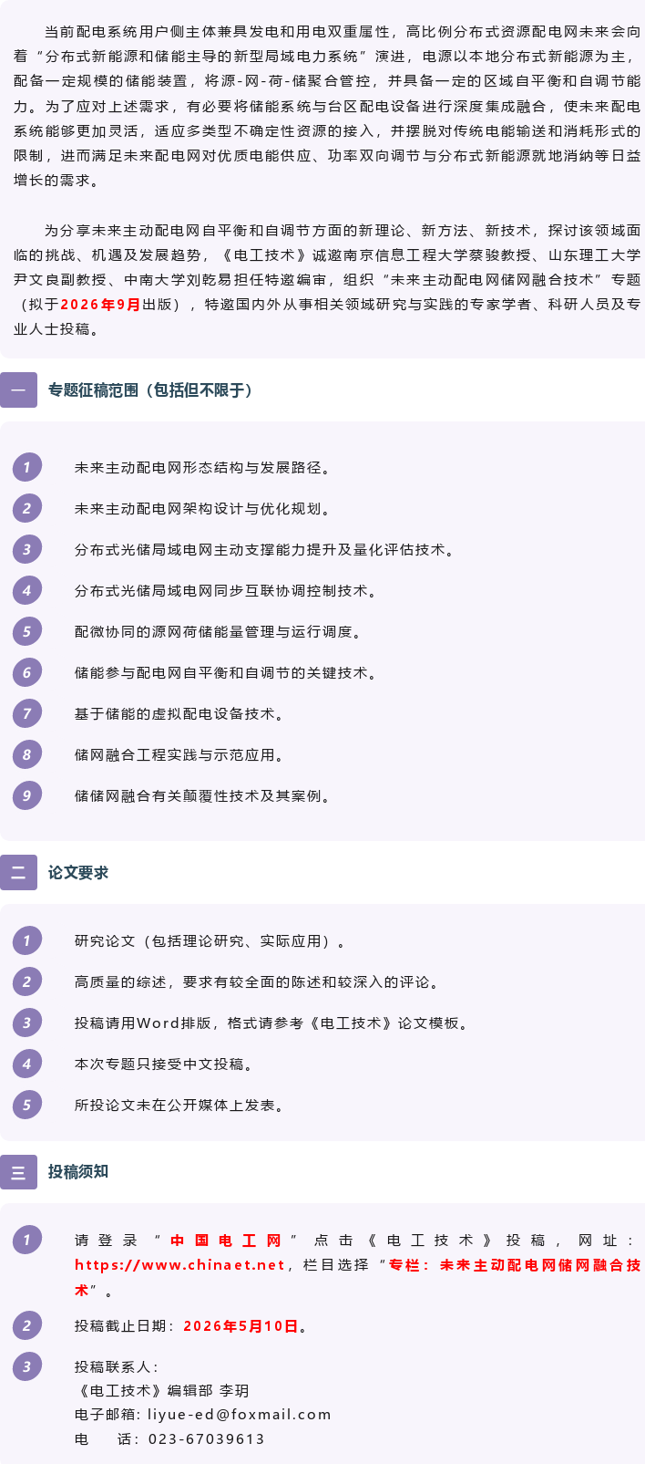 “未来主动配电网储网融合技术”专题征稿!
